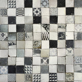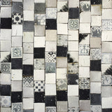 Chunky square tile Black patterns on matt white EFJ9M 11C