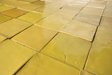 Colour Detail: Handmade tiles glazed in tones of yellow. Surface imperfections add to the charm of these tiles.