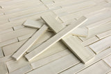 A refined ivory white base with delicate blue-grey undertones that shift subtly under light. The gloss finish enhances the interplay of warmth and coolness, giving the tiles a versatile character — fresh and modern yet timeless. Natural tonal variation across pieces highlights their handcrafted quality and adds depth to wall or surface installations.