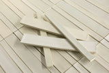 A refined ivory white base with delicate blue-grey undertones that shift subtly under light. The gloss finish enhances the interplay of warmth and coolness, giving the tiles a versatile character — fresh and modern yet timeless. Natural tonal variation across pieces highlights their handcrafted quality and adds depth to wall or surface installations.