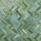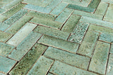 Colour Detail: Rectangular Klompie Tile with glassy aqua to green glazes, for use on wall and floor.
