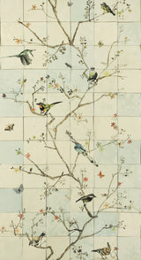 HAND PAINTED BIRDS ON BRANCH TILE MURAL 0.7m x 1.4m (5SFUFL 2B)
