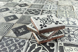 Chunky square tile Black patterns on matt white TR74UM 3A
