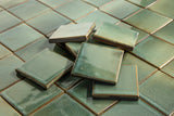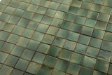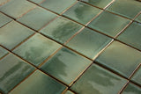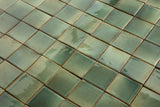 Colour Detail: A rich tonal green composition with soft gradients that transition from deep forest through verdant mid-tones to muted celadon edges. Subtle firing variation introduces gentle shifts of bronze warmth along the grout lines, creating a dynamic play of light and depth across the circular pattern. The overall effect is organic and architectural — a balance between hand-crafted irregularity and geometric precision.