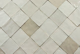 Colour Detail: Hand made tiles, mixed linen beige, cream to warm white glazed tile on walls. Hand manipulated undulating surface and the raised edges enhance the glaze finish through light and shadow for a homely feel.