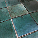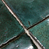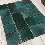 Handmade square tile glassy blue greens FMNDAX 10C