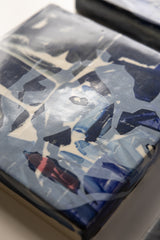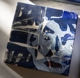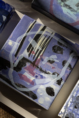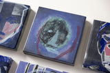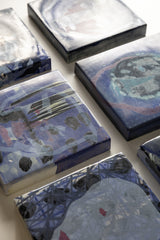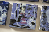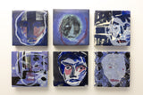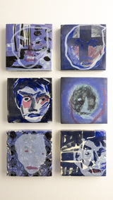Note: A series of small-format abstract portrait studies by Gerrit Oosthuizen, produced in preparation for a modular wall installation. Each piece carries layered painterly marks in deep indigo, violet, and muted tones, evoking shifting identities and dreamlike impressions. Designed with the option to pivot and reposition, the works invite dynamic arrangements that transform the wall into an evolving dialogue between image and space.