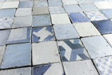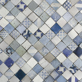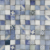 Chunky square tile Blue patterns on matt white MAD4N 7A