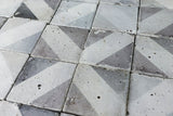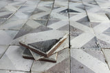 Colour Detail: Printed grey geometric pattern, matt glazed tile